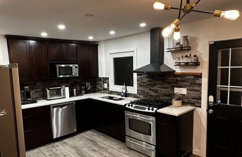 enjoy this beautiful modern two level home Full Kitchen, Full Bathroom, washer/Dryer. Relax in the living room or in the backyard with access to the in-ground Pool and BBQ during months (June, July and August, September) This place has AC split units for the hot days and an electric fireplace for this cold days. You will have a dedicated workspace with high speed mesh wifi system. Smart Home.