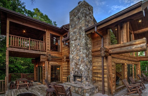 Antler Ridge - a stunning log cabin with spacious deck equipped with outdoor fireplace, hot tub, and scenic mountain views! | Cabin in Bryson City