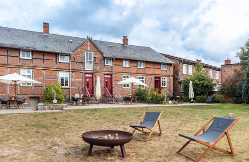 the four vacation apartments are located in a lovingly and naturally restored manor house in helle, a town near pritzwalk/prignitz The old manor was originally built in 1826 and is now, after years of natural restoration fundamentally renovated. Quaint and modern at the same time, it enchants with many original details. The apartments are sustainable and naturally renovated, with adobe walls and charming furnishings. A real oasis of well-being to slow down and relax. Or to get creative. A huge courtyard invites you to linger. Unwind, feel nature and enjoy peace and quiet - the Prignitz region in Brandenburg is ideal for this. The village of Helle is a tiny place, only about 1.5 hours from Berlin or Hamburg, but like in another world. Helle has about 38 inhabitants and is one of the last Rundlinge Deuschlands.More horses than people and the feeling suddenly to live in 1950 (only with more comfort, Internet and Netflix.Directly nearby you can make canoe trips on the Stepenitz (nature reserve) or fishing. Cycling and bike tours are possible on some beautiful designated bike routes. Helle is located directly on the Brandenburg Cycling Route. Having a car is an advantage, because Helle with its 38 inhabitants has no shopping facilities. Buses do not run that often, but they do exist. Parking is free in front of the farm.