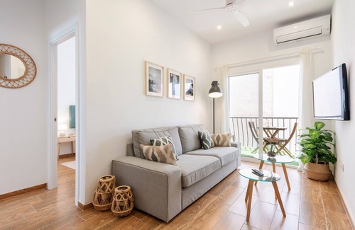 The holiday apartment Bokeron Host - Soho Malaga with step-free access and interior is located in Málaga and is perfect for an unforgettable holiday with your loved ones. The 85 m² property consists of a living room, a fully-equipped kitchen, 3 bedrooms and 1 bathroom and can therefore accommodate 6 people. Additional amenities include high-speed Wi-Fi (suitable for video calls) with a dedicated workspace for home office, a TV, air conditioning, a fan as well as a washing machine. The building in which the accommodation is located has an elevator. This vacation rental features a private balcony for your evening relaxation.