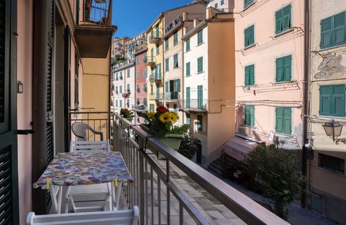 Apartment has a balcony which overlooks main street of Riomaggiore Cinque Terre | Apartment in Riomaggiore