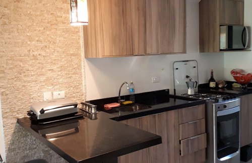 Apt / chalet in delicious condominium in una bar. Condominium walk in the sand in the middle of the rainforest, with direct exit to the beach, swimming pool, restaurant, tennis court. 2 bedrooms, living room, kitchen, bathroom, balcony and 1 parking space. Barra do Una Beach has a sea and river beach (there is the meeting of Rio Una and the beach in the left corner of the same). On the beach there are kayaking and stand-up paddle rentals..