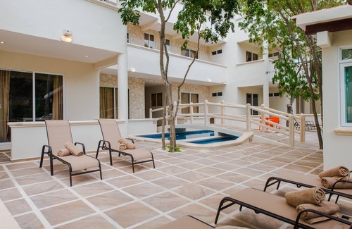 CasasIn condhotel is located in the new residential area of Playa del Carmen separated from Playacar by the federal road and at 1.4 miles from the famous 5th Ave and the best beaches downtown. It is a Safe Heaven, new, nicely decorated and quiet for you to relax wholly. There is 3 different categories (Deluxe, Superior and Junior Suite) each of them offering: a bedroom with king size bed and A/C, TV, safety box, ceiling fans, a living room with sofa (it can be acomodated for a third guest), table and chairs, complete kitchenette with a fridge and a stove, coffee machine, balcony, full bathroom, closets, cable flat screen TV, WiFi. Housework is included every 2 days. The Junior Suite has an extra bedroom with single bunk beds, A/C in the living room and an extra balcony. There is an elevator. You can relax in the pool or a deck chair after a day at the beach.