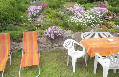 in a quiet central location of the only climatic spa of the administrative community "rennsteig", bergstraße, no through traffic! high-quality total equipment with stove, wifi including at least 1 room (equipment follows the requirements of 4 star category classification): 2 bedrooms with double beds; living room: (laminate) stove, modern corner couch (foldable lying area approx 1.60 m x 2.00 m), armchair, satellite connection (if necessary), CD player, compl. separate kitchen: dishwasher, ceramic hob, oven with grill, refrigerator, separate freezer, coffee machine, kettle, toaster, etc comfort bath with toilet, large corner bath, towel warmer; garden seat and barbecue lick with sun loungers (april to october)