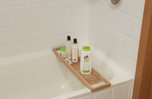 while you're here, you can enjoy all the comforts of home and more, including wifi and air conditioning, as well as an ironing board and laundry facilities Other amenities include towels, soap, toilet paper, and a hair dryer.