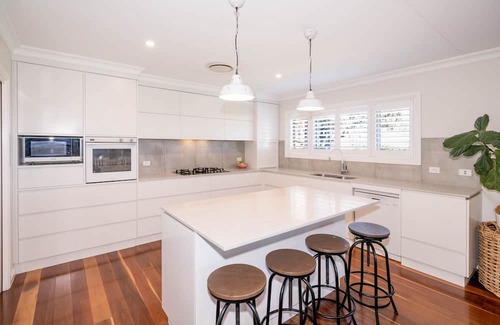 step inside to find open-plan living spaces filled with natural light and a warm, inviting vibe The fully equipped kitchen is a dream for home cooks, with everything you need to whip up meals and snacks after a day of poolside lounging or exploring the Tamworth region.