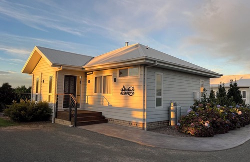 the cottage comprises a spacious combined kitchen living and dining area as well as two bedrooms, each with its own ensuite Bedroom one has a queen bed, sitting chair and walk in robe. The second bedroom has two single beds and a built-in robe.