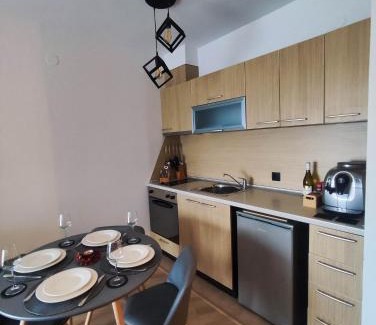 Aspen Resort Studio I306 is a recently renovated apartment in Razlog where guests can make the most of its pool with a view, fitness center, and indoor pool. The apartment offers a spa experience, with its sauna, hot tub, and steam room. There's a restaurant serving international cuisine, free private parking, and an electric vehicle charging station. With free Wifi, this apartment provides a flat-screen TV, a washing machine, and a fully equipped kitchen with an oven and toaster. Towels and bed linen are provided in the apartment. The accommodation offers an air conditioning, a heating, and a private bathroom. Buffet and à la carte breakfast options with fresh pastries, pancakes, and fruit are available. There is a coffee shop and bar. For guests with children, the apartment features an indoor play area, outdoor play equipment, and a kids' club. Guests can relax in the garden at the property. Regional Historic Museum – Blagoevgrad is 31 miles from Aspen Resort Studio I306, while Holy Virgin Church is 6.3 miles away. Sofia Airport is 100 miles from the property..
