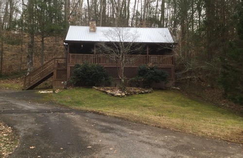 the road condition to the cabin is flat and paved with visible signage and there are no scary winding hills to climb There is also a paved shared driveway with a slight incline and room to park one car with easy loading and unloading. There is one gradual flight of steps that leads up to the main floor of the cabin that can be viewed in the posted pictures so this cabin is not wheelchair accessible.