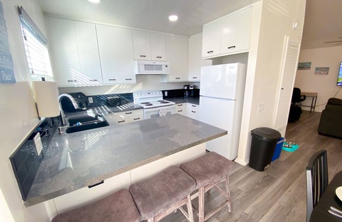 The perfect San Diego getaway on Crown Point in Pacific Beach, less than a block away from the sandy shores of Crown Point Beach Park with full family amenities. Dog Friendly remodeled 2-bedroom 1.5 bath townhouse. Bayview balcony overlooking the in-ground spa and a large private patio. Hi-speed WiFi, dedicated workspace, in-unit washer/dryer and all the amenities of home. Dog friendly neighborhood, walking distance to dog friendly parks and beach area. Watch the summer SeaWorld fireworks from you private balcony.