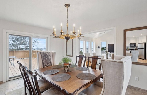 Welcome to Bay View Home, where comfort meets style! This beautifully decorated 3-bedroom, 2.5-bath home offers stunning views of the Bay of Green Bay. The master bedroom features a luxurious king adjustable bed, while bedrooms 2 and 3 each have queen beds. Relax in the basement bar and sitting area with a TV, or enjoy the large deck and attached sunroom. Near the University of Green Bay, Lambeau Field, Bay Beach Amusement Park, GRB Airport, and Oneida Casino.
