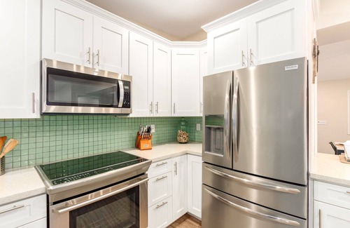 the large backyard is made for relaxation and fun, with a gas fire pit, hot tub, world class diving heated pool with slide and diving board, in-pool bar stools, fountains and patio dining area Take it up a notch with an outdoor BBQ eat-up bar station, putting green, sun tanning deck with loungers and sand volleyball pit – all behind walled-off privacy walls. and if that wasn't enough - there's a new game room in the garage space featuring billiards, shuffleboard tv foosball ping pong tables and workout equipment – sleep 18!