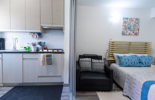the kitchen is equipped with an oven, a stovetop, and a refrigerator, as well as a coffee maker, an electric kettle, and a lobster pot Connect to the WiFi, or get cozy in front of the cable/satellite TV. Bathroom amenities include a hair dryer, towels, and toilet paper. And because there's a washing machine, you can go a bit lighter on your packing. Other amenities at this 1-bedroom, 1-bathroom rental include bed sheets and an ironing board.