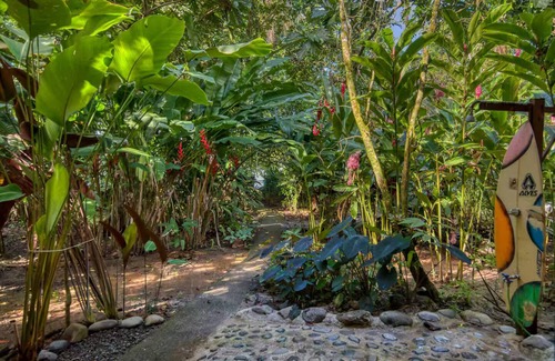 surrounded by lush natural gardens full of exotic plants and wildlife, casa de la musa is one of only a handful of houses directly on punta uva beach, the most swimmable beach in the puerto viejo area The house sits 50 meters from the water line which is the closest Costa Rican homes can legally be to the ocean.