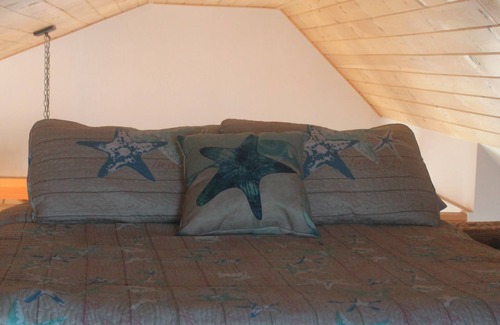 our upstairs, open-concept garage apartment has access through the garage itself (the garage is neat - we don't keep vehicles there) The apartment touts a complete kitchen with gas range, full size refrigerator, coffee maker, toaster oven, and dishwasher. Dishes and cookware are available if you choose to eat in. Adequate space for dining is at the bar and also a small table for two that overlooks the lobster pound and ocean. There is a bathroom with a shower only (towels provided.) A washer and dryer are available for your convenience, as well as ample closet space. The comfortable living room is a great place to unwind and watch TV or just relax with a good book. There is a queen size bed downstairs and a queen size mattress and twin mattress in the loft upstairs. The loft is cozy, but it’s not a space where someone can stand completely upright. The views from the apartment are spectacular and there’s the opportunity to see more as you step out the door. Because this is a lobster fishing community, you will clearly see fishermen coming and going in their boats from our property. You also are welcome to walk around our family’s lobster pound which is directly beside the garage. Our guests are invited to use the bench and table made from lobster traps that sit on the left side of the lobster pound. the most spectacular sunsets are visible here as you fill your lungs with crisp, ocean air!