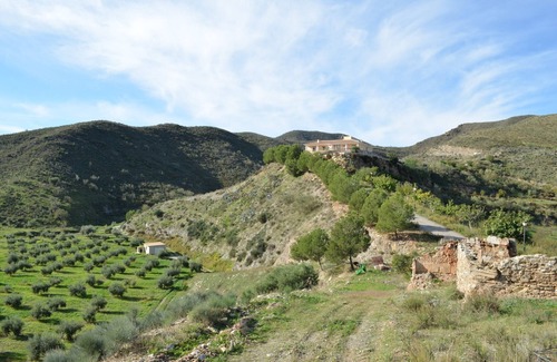 High in the mountains, approximately 650 metres above sea level in a quiet olive plantation surrounded by mountain tops. Set in 100 acres of grounds and olive plantation, with stunning day and night time views, this private one bedroom apartment offers a kitchen, living area, double bedroom and bathroom with shower. Perfect for walks, relaxation, NO MOBILE signal available. Car essential. Food packs by arrangement, very remote area approximately 1.5 hours from Almeria airport and the coast..