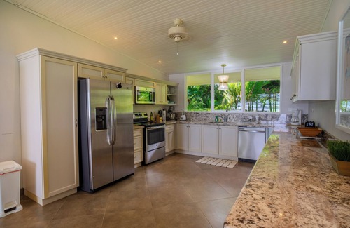 the main house has 2 bedrooms, 2 bathrooms, a large and spacious kitchen, a dining and living room area with ocean view The guest house has a kitchenette, king-size bed, and bathroom.