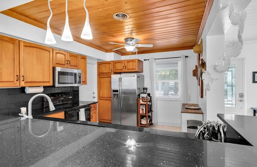 step into this delightful hideaway and be welcomed by sunlit, open-concept living areas bursting with colorful coastal decor Lounge on the plush sofa to stream your favorite shows on the smart TV, or enjoy your morning coffee on the well-furnished patio as the boats float by. A well-appointed kitchen boasts modern appliances, ample counter space, and everything you need to craft a delicious home-cooked meal. With ultra-high-speed internet perfect for gaming or business activities, this rental is ideal for any work-from-home professionals hoping to get a little work done vacation-style.
