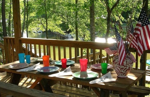 our home has everything you need to enjoy a relaxing vacation in style! two nearby boat ramps and your own private dock in the backyard Two large porches and a waterside gazebo offer plenty of space for outdoor relaxing and dining. Our lot slopes gently down to the water which makes it easy to walk to the dock... plenty of room for kids to play and explore. Enjoy the hammock or the porch swing on the dock while the kids swim in our protected cove. FREE USE OF OUR 'OLD TOWN' 3-PERSON CANOE FOR GUESTS.