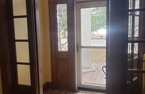 This historic lakeshore home is situated in a lovely tree-lined residential area. Positioned at the park entrance overlooking the lake. This lovely home features 4 bedrooms, 4 bathrooms which includes 1 king, 2 queen, 1 bunk bed with an additional queen bed available. Our guests rave about the comfortable beds Chefs! Chefs kitchen, dining table seats up to 10 with additional bar seating plus a table in sunroom that seats 4. Enjoy the grand central staircase, interior french doors, beautiful woodwork, not to forget exceptional views from the large windows and balcony. Whether its walking, biking, swimming, boating, shopping, restaurants or BVU its all here in this charming location! We hope you'll enjoy your stay at our fabulous estate..