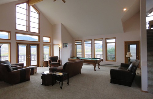 Get away from it all to this beautiful 3700 sq foot mountain retreat. 3 large bedrooms, loft, bunk room and extra floor space can accommodate families and large groups. Pool table, foosball, and air hockey for evening entertainment. High speed internet available. The kitchen is fully equipped so you can fix your own meals or you can dine out at the Grasshopper Inn or Elkhorn only minutes away. In the winter you can enjoy skiing at Maverick Mountain Ski Resort, cross country skiing or snowmobiling on miles of trails and then head over to Elkhorn Hotsprings for a hot soak all within minutes of the house. In the summer enjoy exploring the Pioneer Mountains hiking, biking, horseback riding or fishing in the many streams and lakes in the area. There is a corral available for horses at the house.