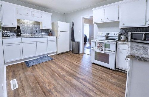 Welcome! Our cozy, Benedictine College-themed 2BR/1BA home, is perfect for short stays. It’s just right for visitors to the college or our charming town. While the floors and kitchen may not be perfect (no granite or stainless steel here), you’ll love the fresh, new furnishings and Benedictine decor. Our well-equipped kitchen has everything you need, and we offer an affordable stay for those who don’t need luxury but value comfort and convenience. A great choice for budget-conscious travelers! Escape to this fully remodeled 2-bedroom home, with its imperfections in the floor and slightly dated appliances the rest is 100% new and all 100% working perfectly. If not we would replace it with the most up to date immediately. Enjoy a fully stocked kitchen, a beautiful shower bath combo, and well appointed queen and king bedroom for a peaceful night's sleep. Relax in the cozy dining area with cozy table and mixology area (just bring your mixes) unwind in the spacious living room with new comfy sofa and second love seat. Step outside to a front porch with a charming set of outdoor chairs retreat to the rear yard for Bocci, surrounded by century-old trees offering shade and serenity. Perfect for a relaxing getaway, visiting Benedictine College or exploring the nearby attractions. Welcome to your Airbnb retreat! As our guest, you'll have exclusive access to the entire house, ensuring privacy and comfort throughout your stay. Enjoy seamless connectivity with complimentary WiFi and full access to utilities, providing everything you need for a convenient experience. For your convenience, self-check-in is available using electronic access, allowing you to arrive and settle in at your own pace. No need to coordinate key exchanges—we've simplified the process so you can start enjoying your stay right away. Relax and make yourself at home in this thoughtfully equipped space, designed to enhance your stay in every way possible. 📞 Need assistance faster than a cheetah on Red Bull? Hit us up anytime! Call, text, email, or slide into our Airbnb app like it's a slip 'n slide! Jonathan's usually busy saving lives in hospitals nationwide, so his clan (read: family) might jump in to rescue your bacon. We promise, we're almost as fun as a barrel of monkeys and twice as helpful. So go ahead, reach out—we're standing by like superheroes in disguise (cape not included). 🦸♂️✨ This home is designed all around the Benedictine College theme and we tried not to be ultra religious in nature however with the college being Catholic there are a few Catholic items. We did try to limit this to College Theme more than Christian or Catholic. This may be good for some and bad for some and hopefully we hit this just right. We have taken care to let you know that the floor are NOT PERFECT. No the house is not falling down, and yes the foundation was fixed however this old house had to have some big time fixes :). We have had many many people work to make this imperfectly perfect house a good lil airbnb and hope that it will be a quality place for your discerning $..