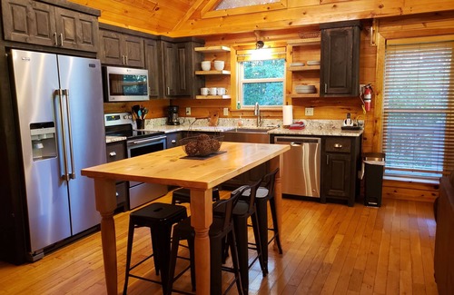This Cabin Has It All: Brand new Kitchen, Appliances & Baths, Luxury Furniture & Linens, Wrap Around Decks, Large Gas Grill, 8 PERSON MAX. Game Room With Bar, Large Flat Screen TV's, Pool Table, Xbox 3 & 260 Arcade Games. Ample Room in the Wide Flat Backyard to Play All Your Favorite Outdoor Games. Fishing is Outstanding. Close to Blue Ridge, Ga Which Offers Great Dining, Shopping & Antiquing, festival's and a vibrant art scene. Located Within the Chattanooga National Forest & Just Miles Away from the Cherokee National Forest in Tn. Large Hot Tub. Log Burning Fireplace On the Main Level, Gas Burning Fireplace in the Basement. Stone fire pit in backyard. Occupancy is limited to 8 people due to septic system restrictions..