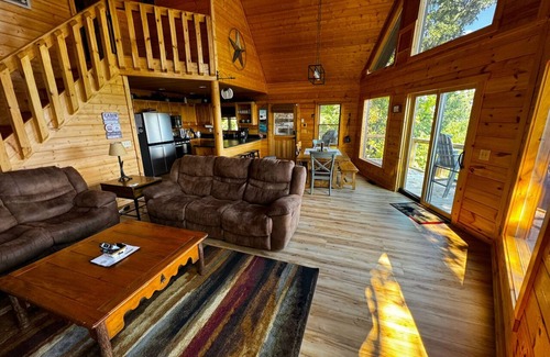 20 minutes from Blue Ridge, Blairsville, and Murphy, NC. Only about 2 hours from the Atlanta metro area. Magnificent views from all 3 stories. 3 bed/3 bath plus bunk beds. 2500 sq ft - Large enough for families but cozy enough for couples.