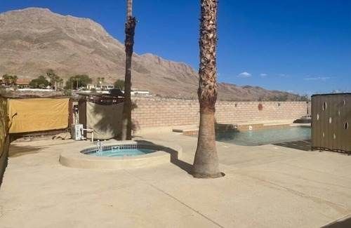 It’s a beautiful two story house with 5 bedrooms, 9 beds, 2 living rooms, and a great view of Las Vegas. The house includes a pool and jacuzzi which is great for the summer and the winter. Jacuzzi is included so no extra cost. While it takes about 15 minutes to get to the strip, we promise that when you will return to a quiet neighborhood. Out doors is spacious with a fire pit and an area for bbq( not include)Each room has a queen size bed and television equipped that is perfect for staying in.