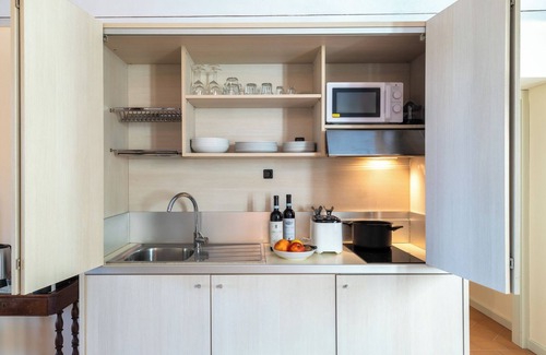 the guest will be available: microwave, induction stove, set of pots, plates and cutlery, nespresso coffee machine, nespresso coffee machine, tea kettle, toaster, juicer and a full range of cups and cooking utensils