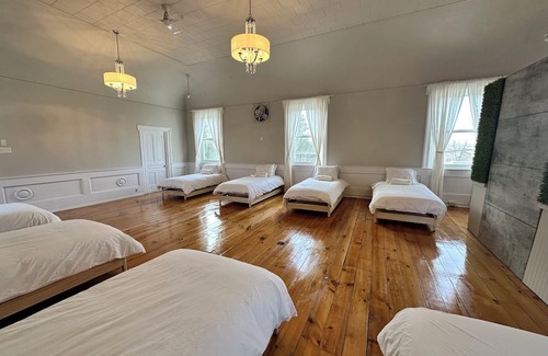 the second floor offers open-style sleeping accommodations that foster a communal and cozy atmosphere, perfect for groups to share stories and enjoy each other's company in a unique setting