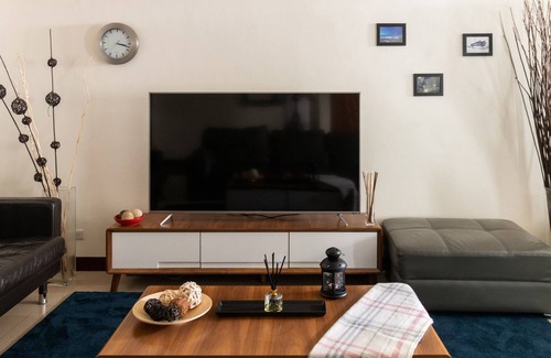 perfect for a group to stay near most desirable area of taipei! this warm suite contains 3 bedroom and 2 bathroom, (double in each room, one room with extra single bed) It's sure to please a family or a group of friends. The place has a one of a kind panoramic view of the city from its private rooftop. The apartment is at a great location. 2000sq. ft 180 sq meters, kitchen with western amenities, newly furnished.