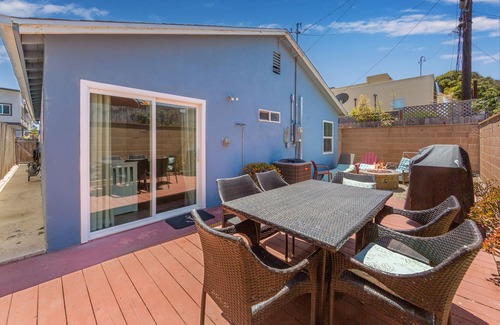 Classic Beach Bungalow, 1/2 block away from the sand, located in the middle of gorgeous Silver Strand Beach. Silver Strand Beach is a mile long beach, this property is located in the middle between "La Janelle" and "The Jetty". One of a kind single story beach home with newer faux wood floors in living and kitchen area, light and breezy fans in every room, tastefully decorated with flat screen TVs in living room and master bedroom. Eat in kitchen area with two bar stools and cafe dining table that seats four. Kitchen is equipped with stove, oven, microwave, refrigerator, Keurig Coffee maker, and all the necessities. 1st bedroom has a bunk bed and a single bed, master bedroom has a queen bed that sleeps two, and 3rd bedroom has a trundle bed that sleeps two. Nice size backyard equipped with fire pit and Bar-B-Q. Lovely outdoor seating area that adds to the relaxed beach living . Washer & Dryer in garage. Bikes, beach toys, beach chairs, beach towels, and a wagon to cart everything in down to the beach! Parking for four cars in the driveway, plus one car in garage... Enjoy photographs of beaches from around the world in this relaxing beach cottage!!.