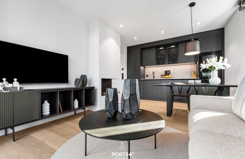 the modern apartment has a spacious bedroom and a stylish bathroom with a walk-in shower so that you can relax after an eventful day on the coast The open-plan living area with a fully equipped kitchen leaves nothing to be desired: Induction hob, oven, dishwasher and numerous kitchen utensils are provided so that you can give free rein to your culinary ideas. Enjoy your meals at the dining table or on the cozy sofa. The SieMatic kitchen is also equipped with a Quooker, making it easy to produce hot water and sparkling water.