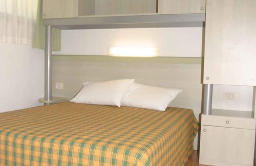 The bungalow is functional furnished. The property is located in a residence. For use are available: children's playground.Holiday resortreception (24 hour service), 1 restaurant, bar and internet (WLAN). Laundry service - optional for a fee on site, ironing service - free of charge LocationGrado. The bungalow is located in a residence, on a plot with trees. Overlooking the sea and nestled in a lush and centuries-old pine forest, just a few kilometers from the wildlife oasis of Val Cavanata, the Residence is the ideal place to spend a holiday with a thousand faces. The days on the beach or in the swimming pool at the campsite, the numerous recreational opportunities, all the services that the structure offers and the proximity to Grado, the Isola del Sole rich in tradition and history, will make the time spent with us pleasantly unforgettable. The Residence offers all the comforts of a campsite and much more: not only a Blue Flag sea for years, but above all entertainment with tennis courts with night lighting, football, mini golf, table tennis and a playground for children. An area rich in beauty, different types of accommodation for every need, a variety of services and a long-standing passion make our structure ideal for holidays with the whole family. The access goes via a side road. Parking lot (for 1 car) on the property. There is a charging station for electric cars on the property. Specialair conditioner, central heating. Facilities: cot and high chair. PoolOutdoor pool. Children's pool. Size of the wellness area 300 m², swimming area - free of charge, outdoor pool 200 m², deck chairs on the beach/parasols on the beach (05/09/2024 to 09/22/2024) - optional for a fee on site LeisureIn the complex: gym, mini golf, tennis, table tennis and bike rental. animation for children. Bicycle rental - depending on availability, optionally for a fee on site, volleyball, football, sports & entertainment programs - free of charge, May 17th, 2024 - September 15th, 2024: Animation for children aged 3 to 10 Dogsallowed, EUR 6.00/pet per day. DistancesShopping opportunity 5 km, restaurant 10 m, town center 5 km.In summer: Bathing possibility 300 m in Grado (beach 300 m in Grado). DivisionBungalow, 1 floor, 2 rooms (including 2 bed rooms), 26 sqm, in total 3 beds. RoomThe entrance in your bungalow is wheelchair accessible. Bedroom with 1 double bed, TV, access to the terrace and Cot possible for overcrowding: Yes, desk. Bedroom with 1 single bed. Kitchenette with fridge and Gas or electric stove. Bathroom with shower and WC. Credit cardsVisa, MasterCard. Terms of lease and pricesIncluded in the priceinternet access, air conditioning, parking place, safe, electricity, water, heating, final cleaning, bed linen, pool, fitness room, table tennis, mini golf. Side costs-Costs on the spot:/Obligatory:hand towels to bring along. local tax by local tariff (if charged).On request:baby cot 3 € per bed per day. For a fee: bicycle, high chair, sunloungers at the beach, sunloungers at the beach.Deposit:EUR 50,-/object..