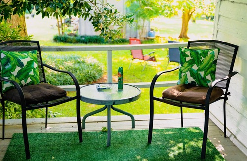 The Bunkhouse is a private apartment located on a one acre veggies and pecan farm. The green shaded landscape is beautiful with small town conveniences in nearby ( only1.4 mile) Eufaula, Alabama. Huge driveway with room for trucks and boats including outdoor electricity. Help yourself to fresh organic veggie's from the garden. We live on the property, if you need us, we are here to assist! Want privacy? not a problem! Three room apartment with Queen bed, wifi. tv, separate room with clawfoot tub/shower. separate room is a kitchen with oven, stove, toaster oven, microwave, sink and fridge. long driveway fits large boats and electricity. private entrance with porch for evening breezes. entire apartment where you find everything you need. I can respect a persons need to privacy or I am happy to chat and offer recommendations where to go in the area. Have a pet? Let's talk about it and more than likely the pet can stay. Downtown Eufaula Alabama is 2 minutes away at 1.4 mile. Providence Canyon https://gastateparks.org/ProvidenceCanyon is a 27 minute drive north where a fun 1/2 day of hiking and exploring can be found. Our lake Eufaula boasts some of the best bass fishing in the world. Small southern town 1.4 miles from EUFAULA Alabama, comfortable, CLEAN, convenient AND affordable. Drive 1.4 miles to downtown EUfaula Alabama. Many boat ramps to choose from. Providence Canyon is 22 minute scenic drive. The apartment door has an electronic key pad so it's super easy to check in and out..