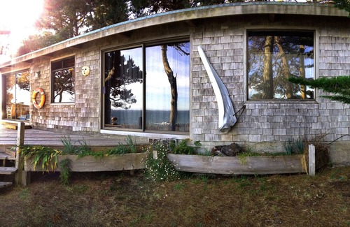 Nestled right on an ocean cliff just off California's beautiful Highway 1 Stand on the deck as low tide reveals the rocks where abalone abound. Crashing of the surf is always on hand and steps down to the ocean are located just across the driveway. Whales may be seen during their annual migrations, and sea lions reside on two small islands just up the coast. Cabin 5 is rustic and cozy. With a full size sauna and Fire Pit. All rooms but one are built from redwood, and the home is completely furnished with bedding and linens, and including fireplace, forced air heating, free internet access, and DirectTV . Both bedrooms have wonderful white water views. The kitchen is small but functional with coffee maker, coffee grinder, stove, oven, toaster, refrigerator and microwave.The home is located two miles north of the small town of Gualala which has galleries, restaurants, gym, bookstore, and several spas. Five miles to the south is the eighteen hole Sea Ranch Golf Course. Other activities include kayaking on the Gualala River estuary or visiting the historic Point Arena Lighthouse located just ten miles to the north. Cap off your day by sitting on the deck with a glass of wine while watching the sun go down..