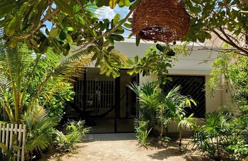 Escape to our charming 1-bedroom beach bungalow in tranquil Sisal, Yucatán. Direct beach access! Rise & shine to Gulf breezes & all-day beachcombing. Inside, find a kitchen, cozy living area with AC, smart TV, Wi-Fi (200 Mbps), modern bedroom/bathroom & screened-in patio. Outside, find gardens, outdoor lounges & fitness platform. Stroll to local eateries & markets for authentic cuisine. Parking included. Ideal for couples, small families, or solo travellers seeking beach retreat. Small pets welcome!.