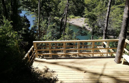 CABIN UP TO 8 PEOPLE, RUSTIC STYLE, WONDERFUL FULLY FURNISHED WITH RUSTIC FURNITURE, INCLUDED SHEETS, FULLY FULLY FITTED KITCHEN, BROAD TERRACE WITH TERRACE, PLOT WITH TRANCURA RIVER AND HIGHWAY, 12 KLM FROM THE CENTER OF PUCÓN AND BEACHES AND 5 MINUTES FROM THE SUPERMARKET , NATURAL ENVIRONMENT WITH NATIVE TREES, NEAR TERM 5 KLMS, AND NEAR VOLCANOES 10 KLMS, SPECIAL FOR HIKING KAYAK AND RAFTING. LOCOMOTION AT THE DOOR OF THE PROPERTY. Large terrace on the ground, overlooking the Trancura River to make roasted cliffs..
