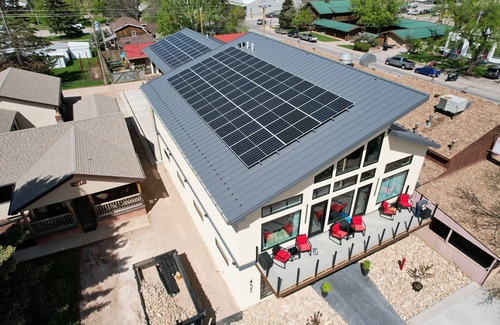 the building itself is a net zero building, generating more energy than it uses, thanks to the large solar array on the roof The near-instant hot water is designed to reduce the volume of used. We have a laundry onsite with high efficiency machines to reduce the amount of energy required to host you. We are delighted to offer you a beautiful space that supports our values of practical sustainability.