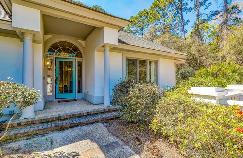 Calm home with patio, enclosed yard, tennis court, golf courses, & heated pool | House in Hilton Head