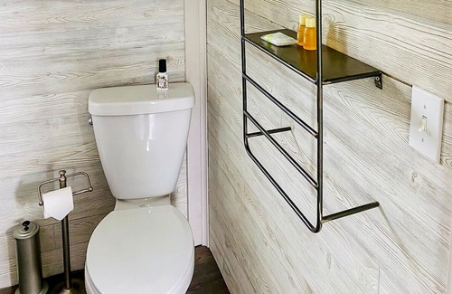 the cabin features a fully functional kitchenette with a two-burner cooktop, microwave oven, coffee maker, and mini-fridge as well as a private bathroom equipped with a shower An outdoor shower stands ready for use as well. We encourage you to bring your own camp chairs. a plush king-size bed ensures you get the perfect night's sleep and wake relaxed and ready for your next adventure!