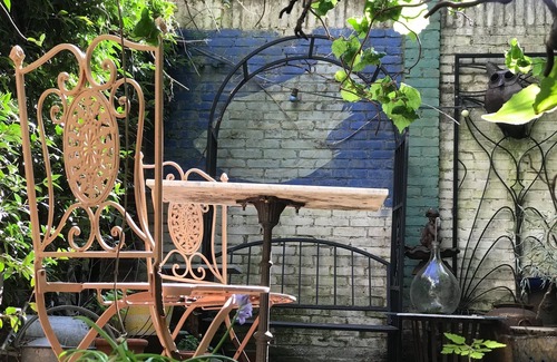 we have also a small boat 'as terrace' where you can sit on if the sun is out In the garden you can relax or smoke.