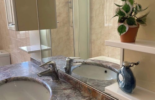 the kitchen is equipped with an oven, a stovetop, and a refrigerator, as well as a coffee maker, an electric kettle, and a microwave Bathroom amenities include a hair dryer, a bidet, and towels. And thanks to the washer and dryer, you'll even be able to travel light. Other amenities at this 3-bedroom, 1-bathroom rental include bed sheets, an ironing board, and heating.