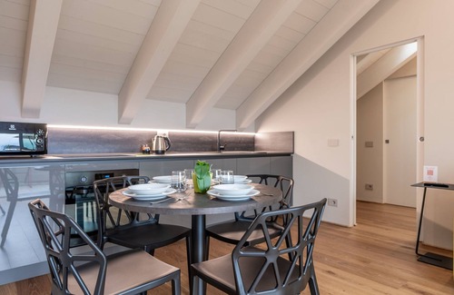 "monviso", 2-room apartment 56 m2 on 3rd floor Bright, with sloping ceilings, fully renovated, comfortable and modern furnishings: living/dining room with panoramic window with 1 double sofabed, TV and air conditioning. Exit to the terrace. 1 double bedroom with air conditioning. Exit to the terrace. Kitchenette (oven, dishwasher, 4 induction hot plates, kettle, microwave). Shower/bidet/WC. Air-conditioning, forced-air heating. Heating available only from 15.10. to 15.04. Terrace 15 m2. Terrace furniture. Panoramic view of the countryside. Facilities: children's high chair, baby cot for up to 2 year olds. Internet (WiFi, free). it004030b4f2mqn5yf