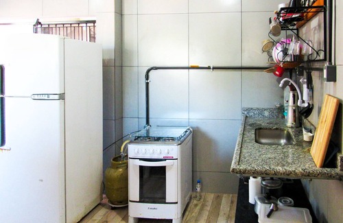 - a cozinha tem tudo que você precisa para preparar refeições, incluindo fogão e geladeira