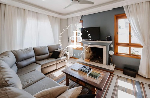 Glamor house for vacation on Praia de Jurerê, with the travel agency AEA Boutique Travel. It has space for indoor and outdoor dining, a fireplace and its kitchen is fully equipped, with 3 ‘duplex’ refrigerators and all the utensils necessary for a pleasant stay.