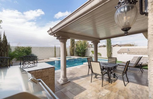The Casa Mia located in one of Las Vegas most prestigious developments. Beautiful SouthWest property - best closest to the strip neigborhood about 10 -15 minutes away from the strip. Close to the airport. Gorgeous traditional very well maintained clean home that feels warm and personal. Every corner in this stunning place well thought out and nicely furnished. Marble floors, fully remodeled bathrooms, travertine pool deck. It has everything from the fireplace to a bbq, fully stocked kitchen, pool towels, jacuzzi, lounge chairs, office with a fax machine, fancy clbt coffee maker with capsules, iron board, shirts steamer .. Nothing is missing really in this home . It’s fantastic! There are restaurants waking distance, dogs hotel and the spa ! Rental car is recommended !!! Call , text , email anytime ! It has everything from the banks , grocery stores , restaurants and huge shopping plaza all in 2 miles radius Home has a two car garage . I recommend for guest rent a car to move around easily . There is Enterprice rental office walking distance ***Spa heat available for $20/day April - Sept and $30/day Oct - March.*** ***Pool/Spa heat available for $50/day April - Sept and $70/day Oct - March.*** Home - 1900 sq.f. living space.