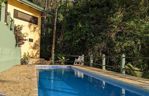 Conveniently located 1000 feet above the village of Uvita, where the mountains go right down to the coast, this private 2000 square foot villa is nestled in a secluded jungle setting with ocean views from the house, patio and pool. Our property manager will meet you on your arrival to Uvita, orient you to the area, and escort you up to the house. He will drive his own vehicle up to the house and you will follow in yours. Due to the rapid rise in elevation, a 4x4 SUV will be needed. Rolando will be available to you by text, email or phone call throughout your stay for questions and issues that may arise. He will attend in person when needed.