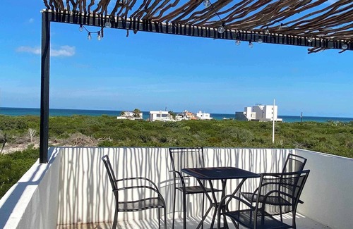 nestled in the quiet fishing village of chuburna, less than 250 meters to one of the most breathtaking beaches in the yucatan Wake to the astonishing view of the Gulf in the 2nd floor main with king bed and ensuite bath. Your guests will have the luxury of their own casita featuring a king bed.
